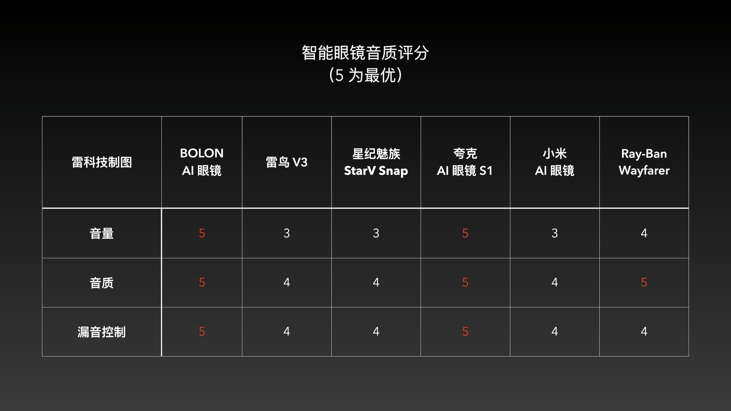 但即使如许,BOLON 和 Ray-Ban 正在镜腿光泽、平顺度、质感和转轴做工方面照样大幅领先于其他品牌。星纪魅族 StarV Snap 和雷鸟 V3 正在细节打点上分庭抗礼,但集体质感照样没有到达 BOLON、Ray-Ban 的水准。